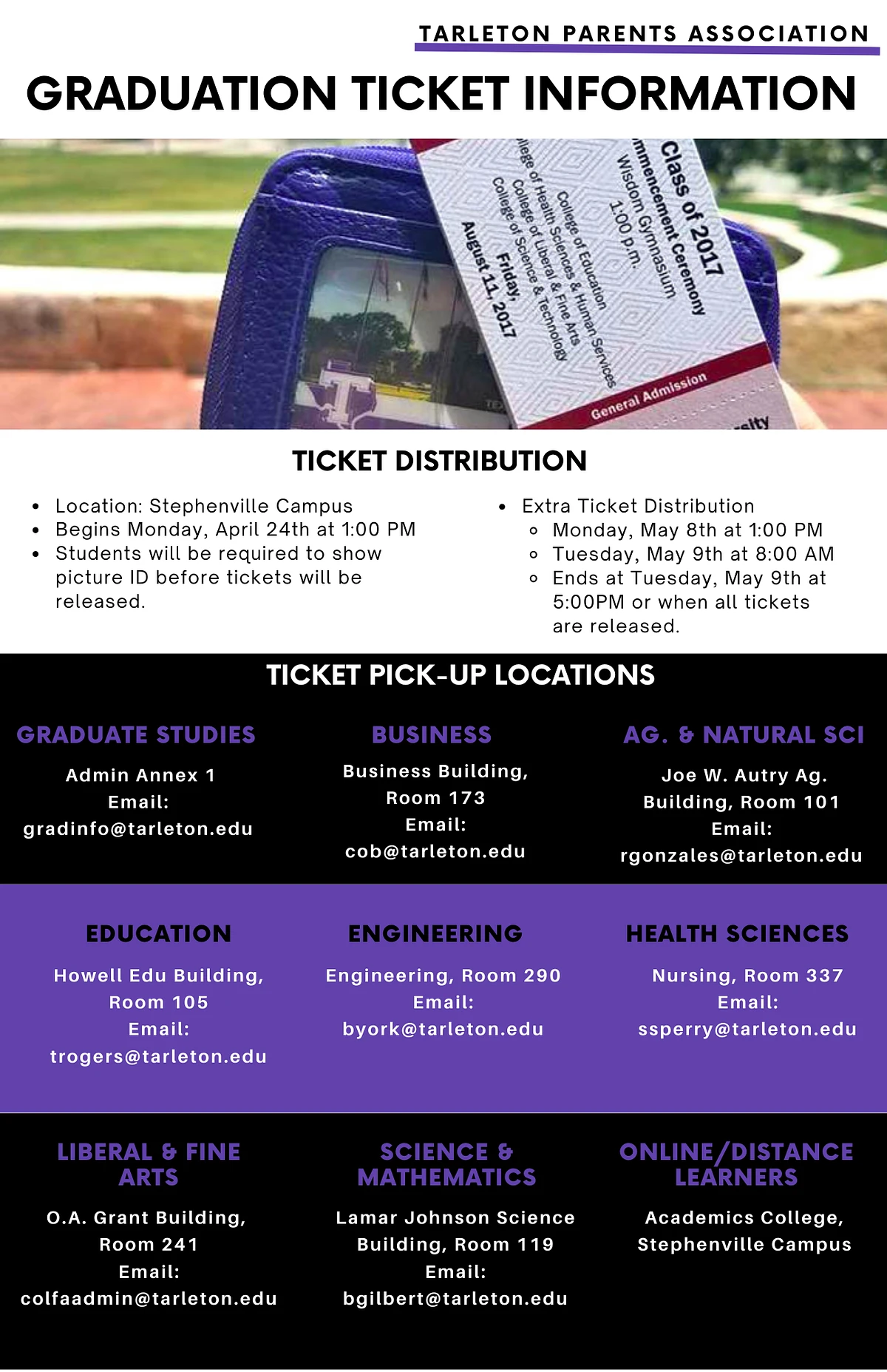 - Only students who applied for graduation by the commencement participation deadline will be able to pick up tickets.