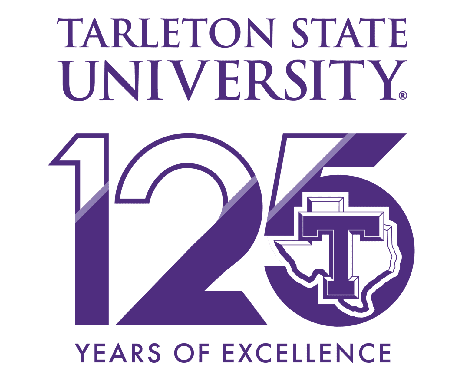 An official logo set has been approved for the 125th-anniversary celebration. The mark is primarily a purple and white number “125” with the Tarleton State logo placed at the core of the mark, symbolizing 125 years of pursuit for victory and honor, echoing the sentiment of Tarleton’s revered color song, “All Hail the Proud Defenders of the Purple and the White.” These two colors stand as the essence of the mark with a delicate thread of lavender between, which underscores the unity of the hues, mirroring the unity found in every Tarleton State Texan.